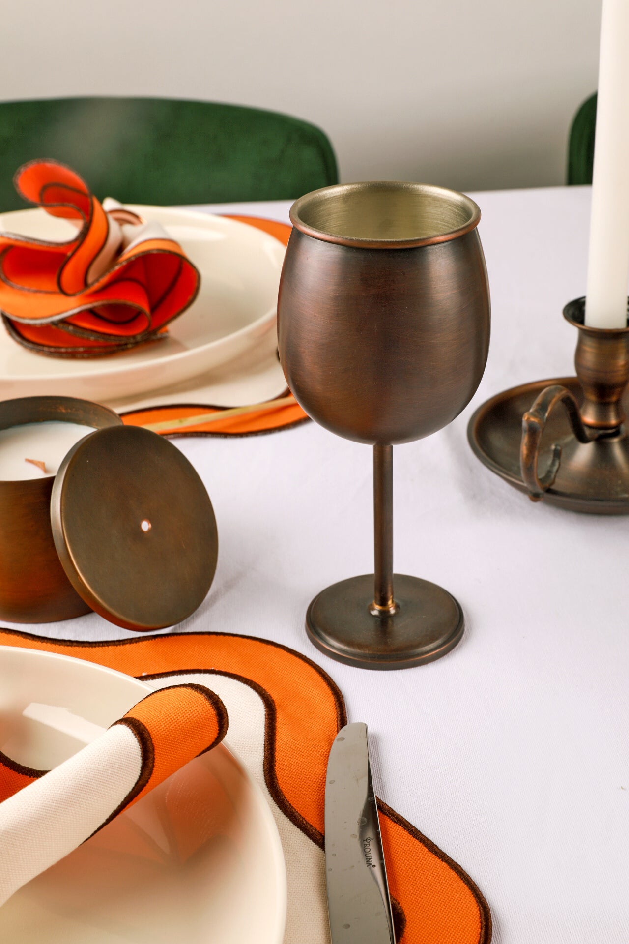 2-Piece OXIDE Copper Wine Glasses Set ,Modern Custom-Made Copper Wine Goblet -Antique Table, Luxury Elegant Table Decor,Anniversary Gift