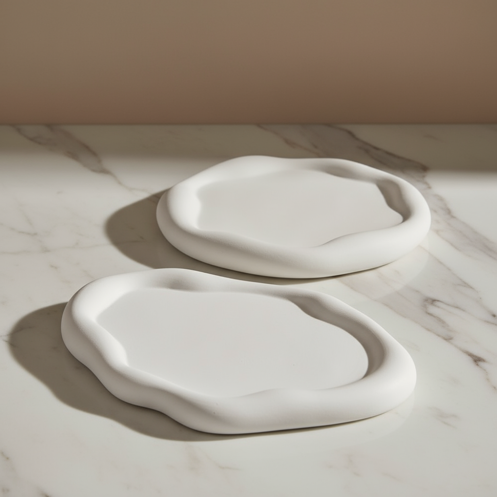 Atelier —2'li Cumulus Bulut Tabak Seti – Taş Dokulu Dekoratif Servis ve Düzenleme Objeleri