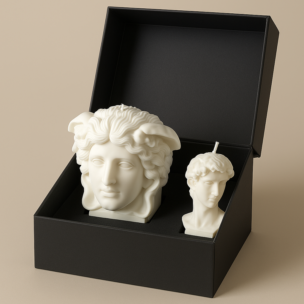Michelangelo’nun ölümsüz eseri David’den ilham alan bu balmumu figür mum, Rönesans’ın estetik anlayışını modern yaşam alanlarına taşıyor.