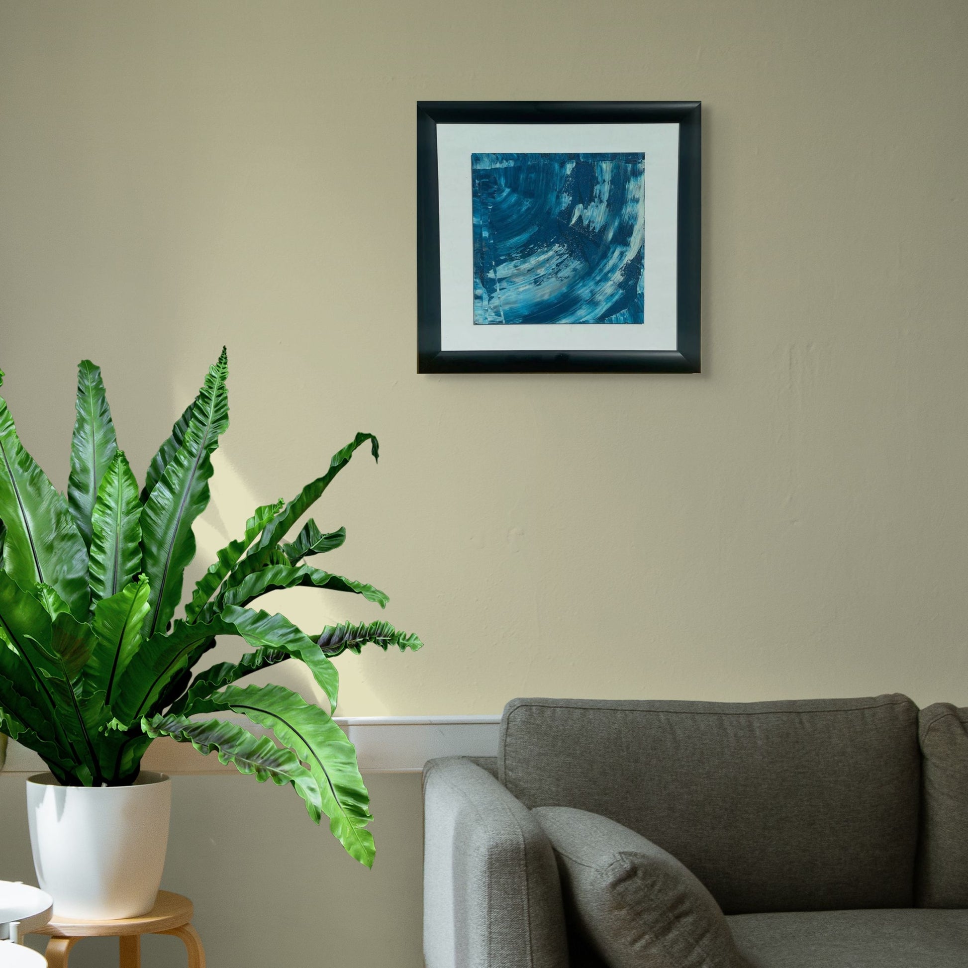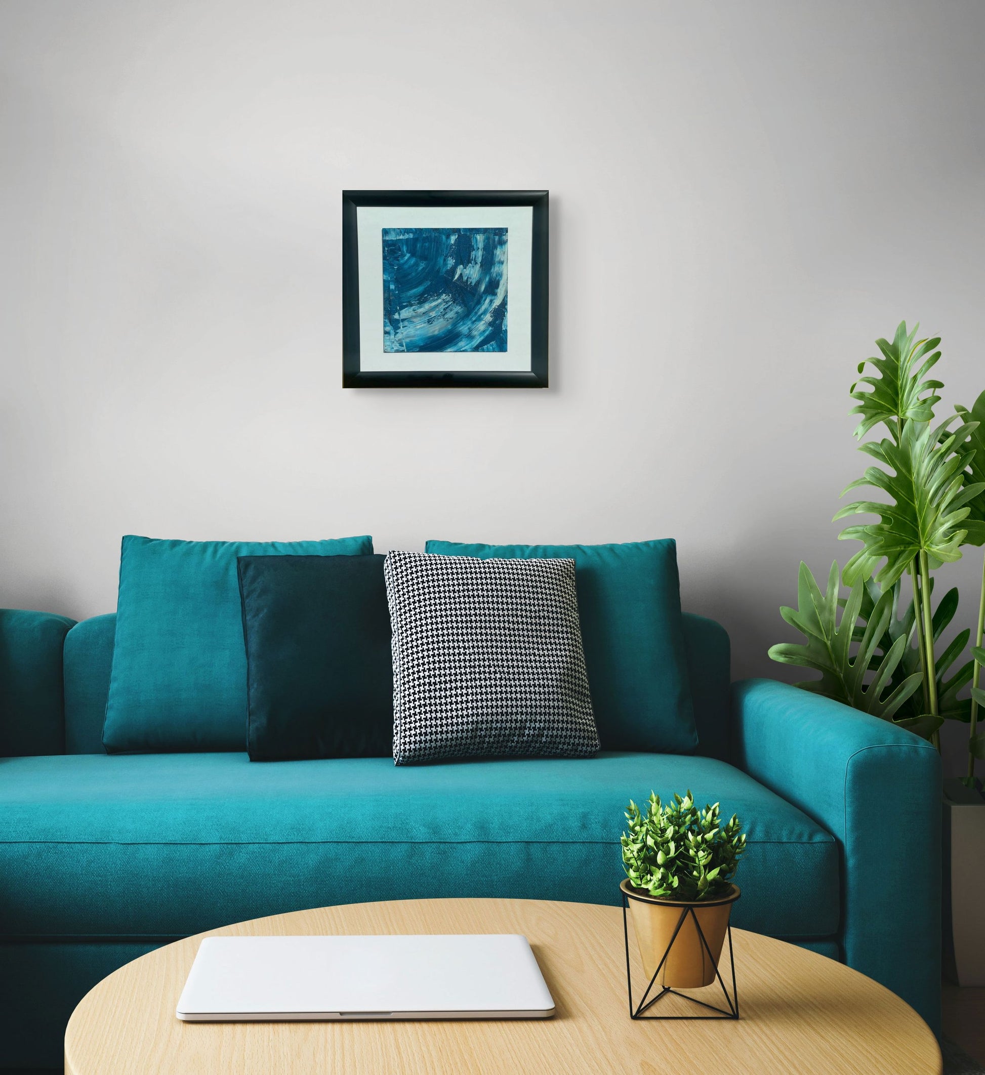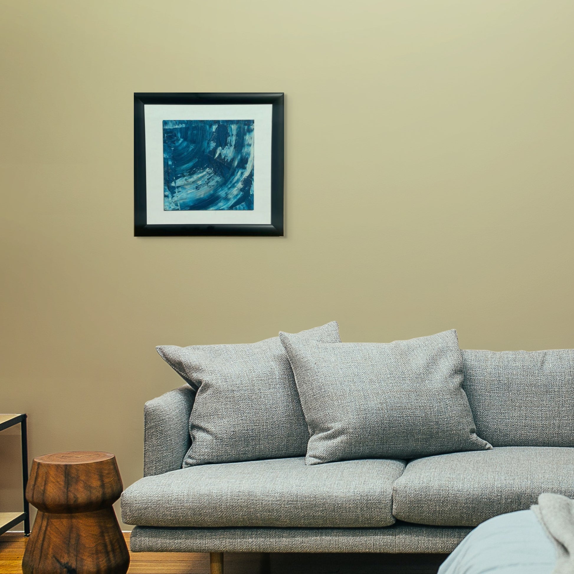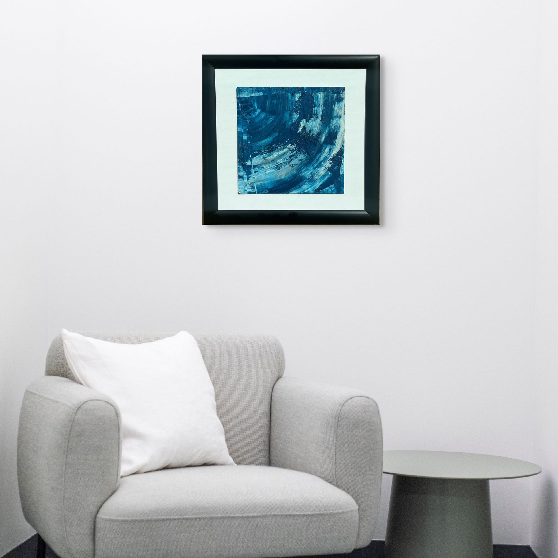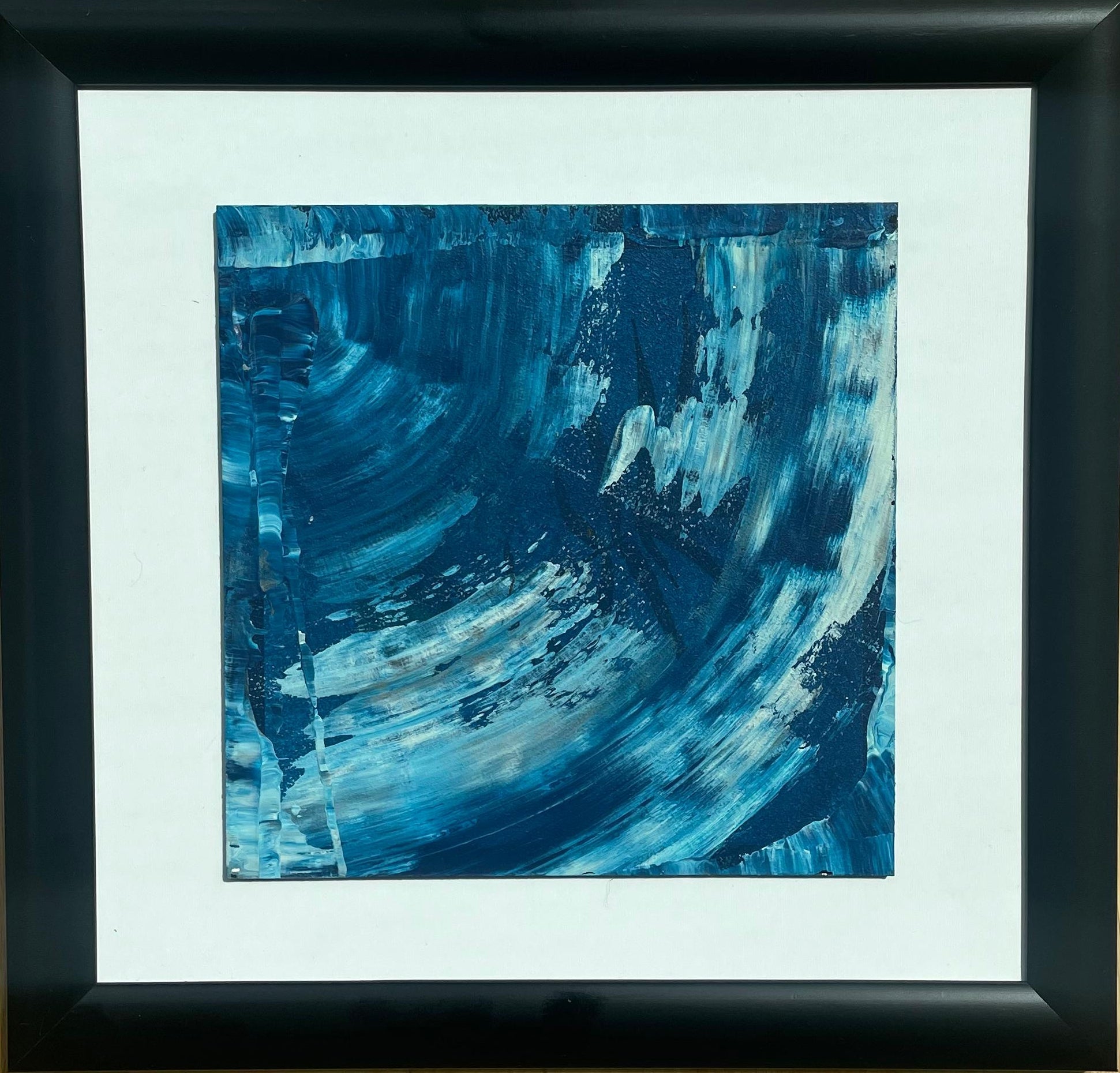 Dairesel fırça darbelerinin güçlü etkisiyle şekillenen bu soyut akrilik çalışma, Ege’nin dalgalarının enerjisini ve ritmini yansıtır. Yoğun mavi tonlarındaki katmanlı dokular, esere derinlik ve hareket hissi katar. Siyah kare çerçevesiyle modern ve minimal bir görünüm sunar.