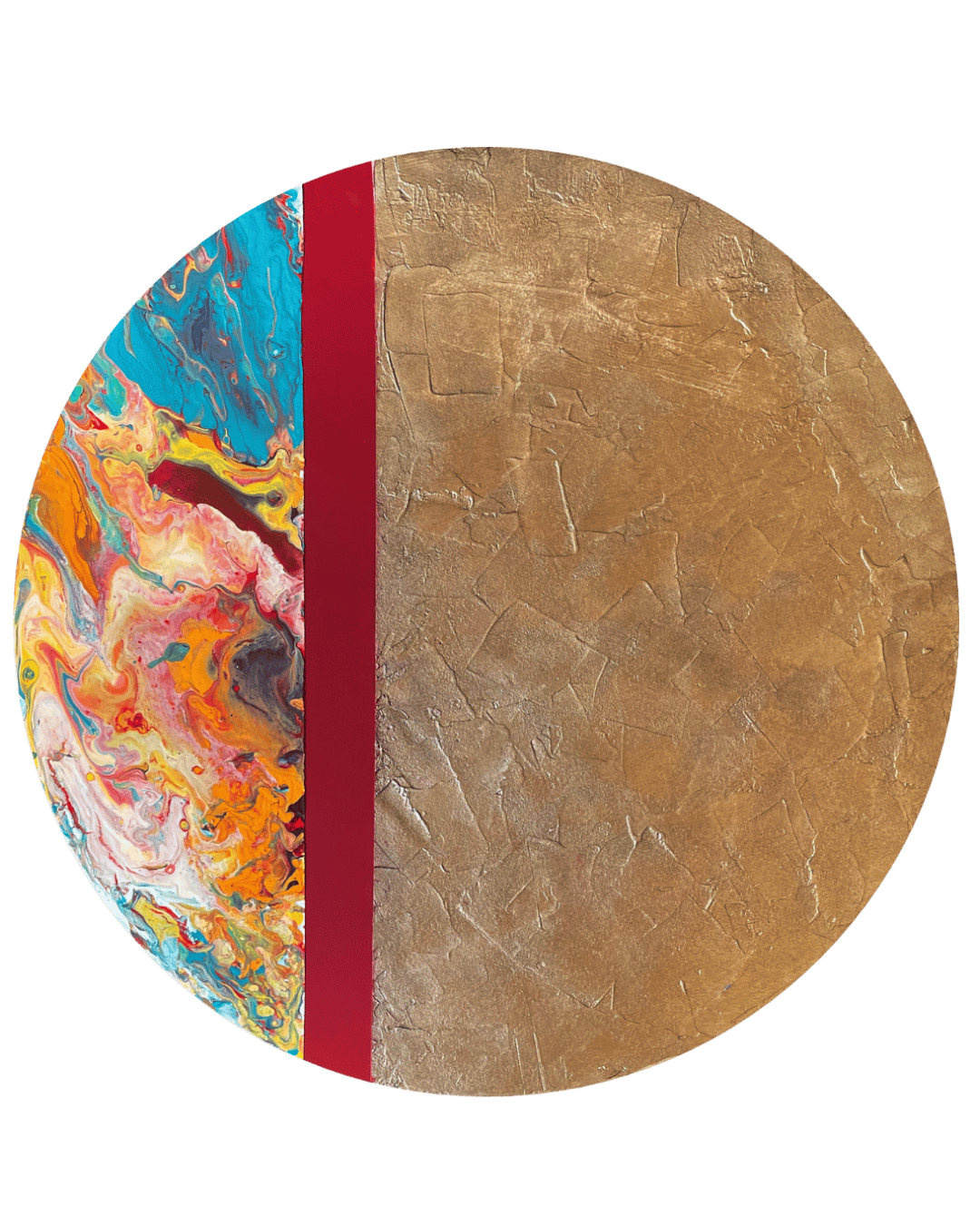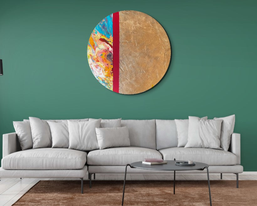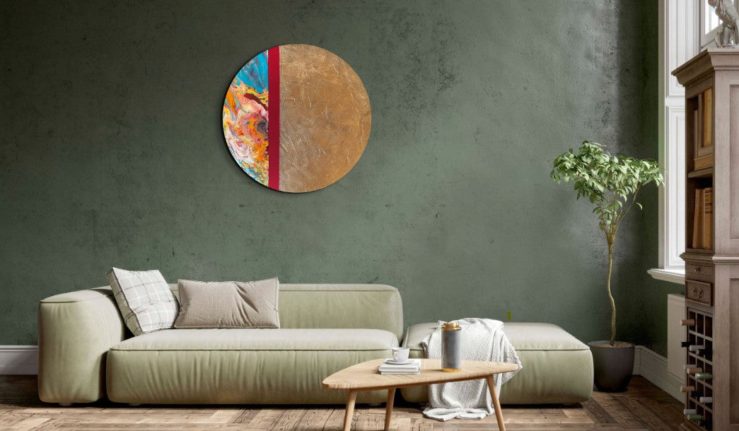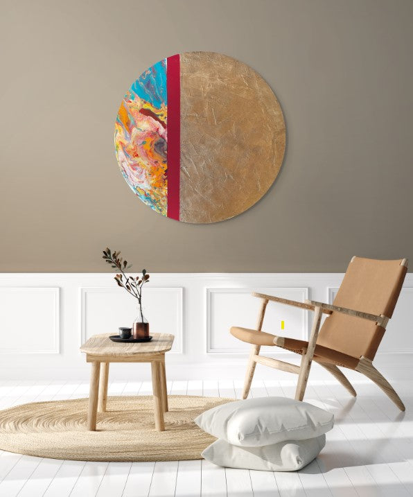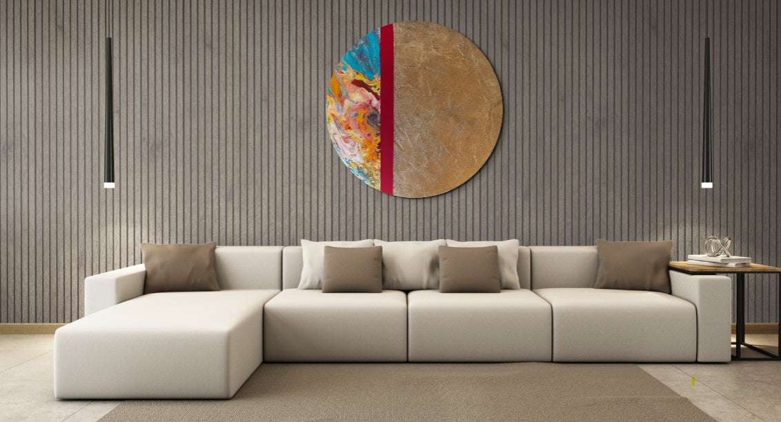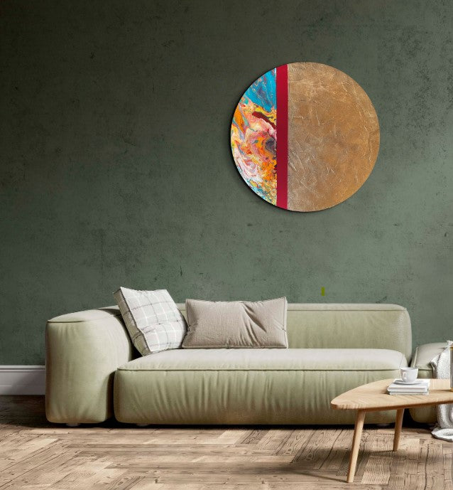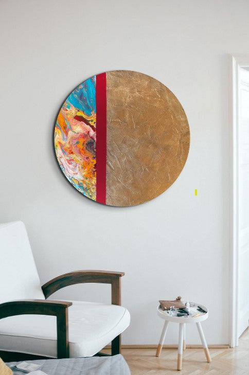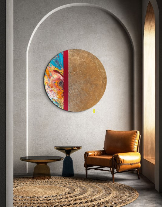 Eşik - Yuvarlak El Yapımı Mix Media Tablo 50 cm - Akrilik ve Dokulu Soyut Duvar Sanatı