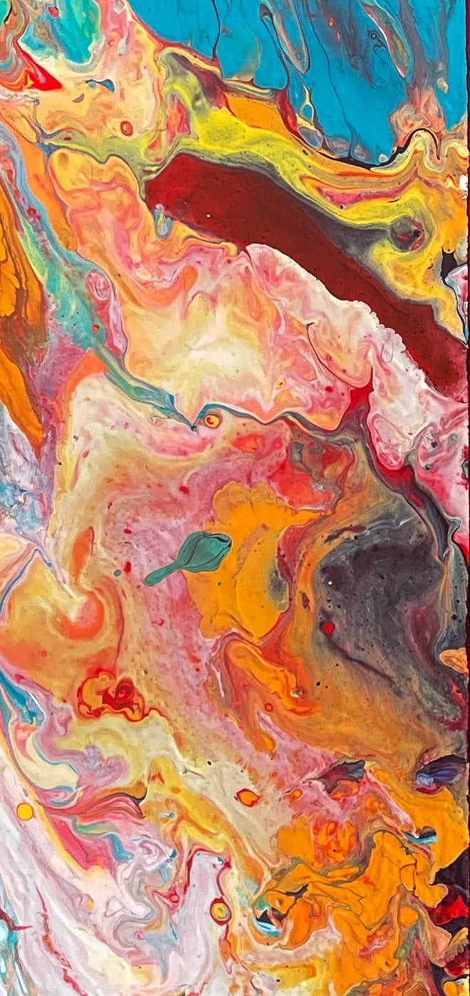 Ahşap tuval üzerine akrilik boya ve texture mix media teknikleriyle üretilmiş olan bu özgün eser, izleyiciye derin bir içsel yolculuk sunar.