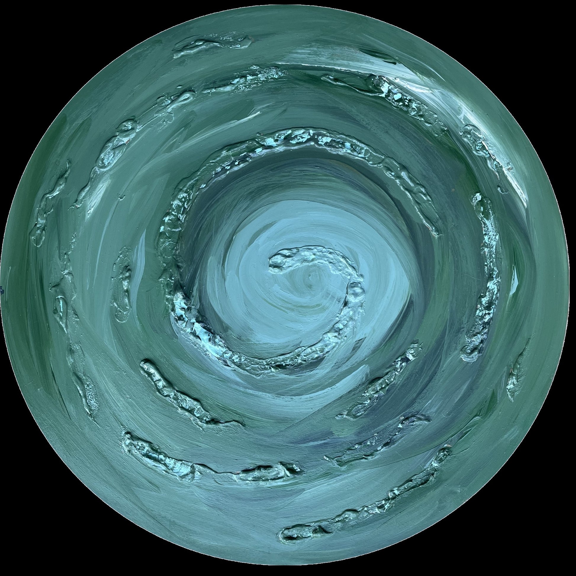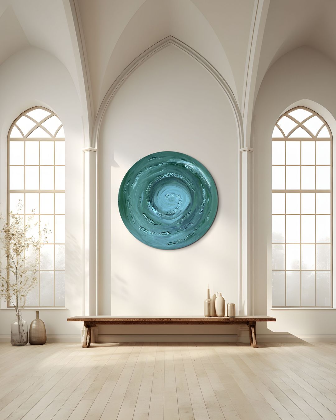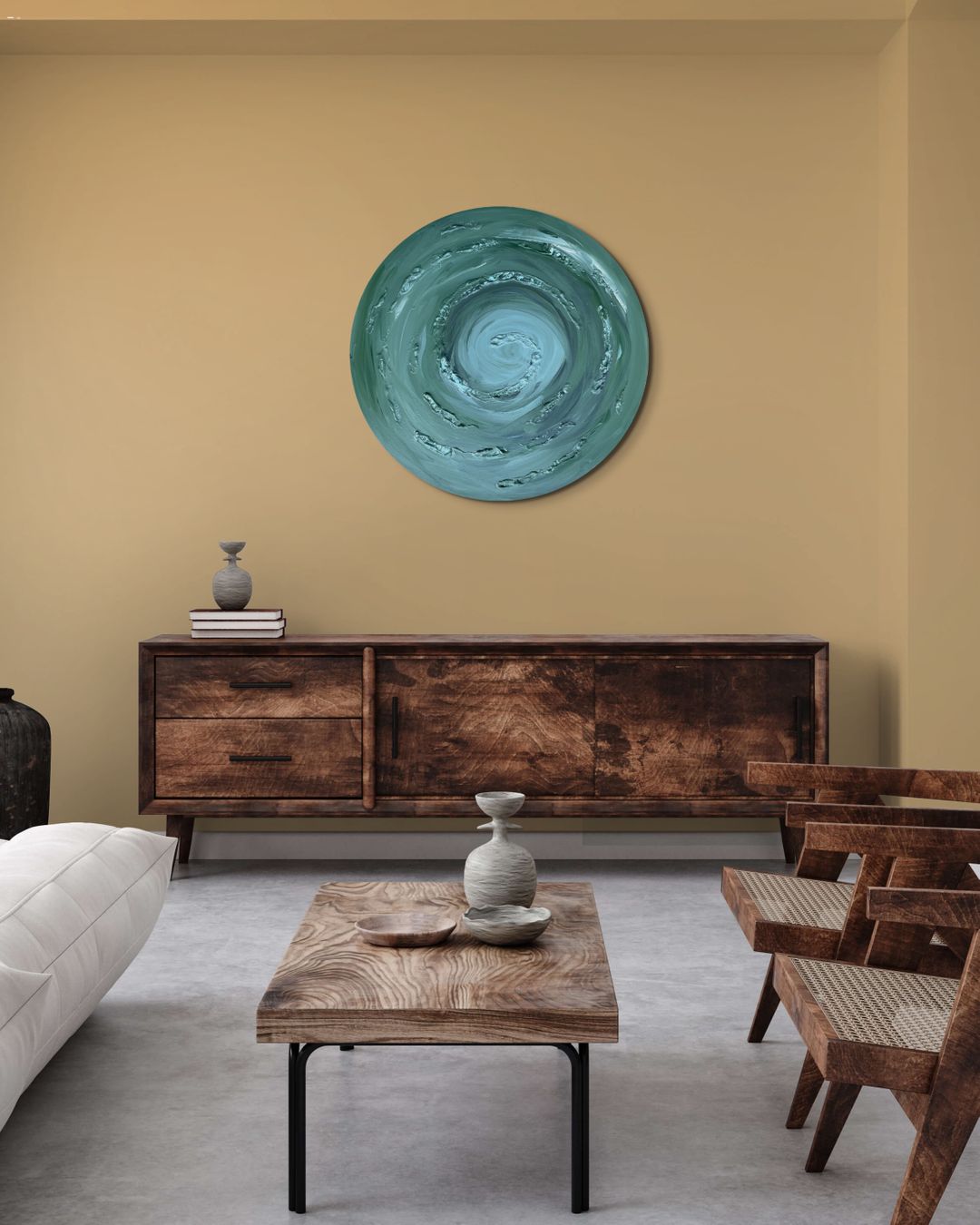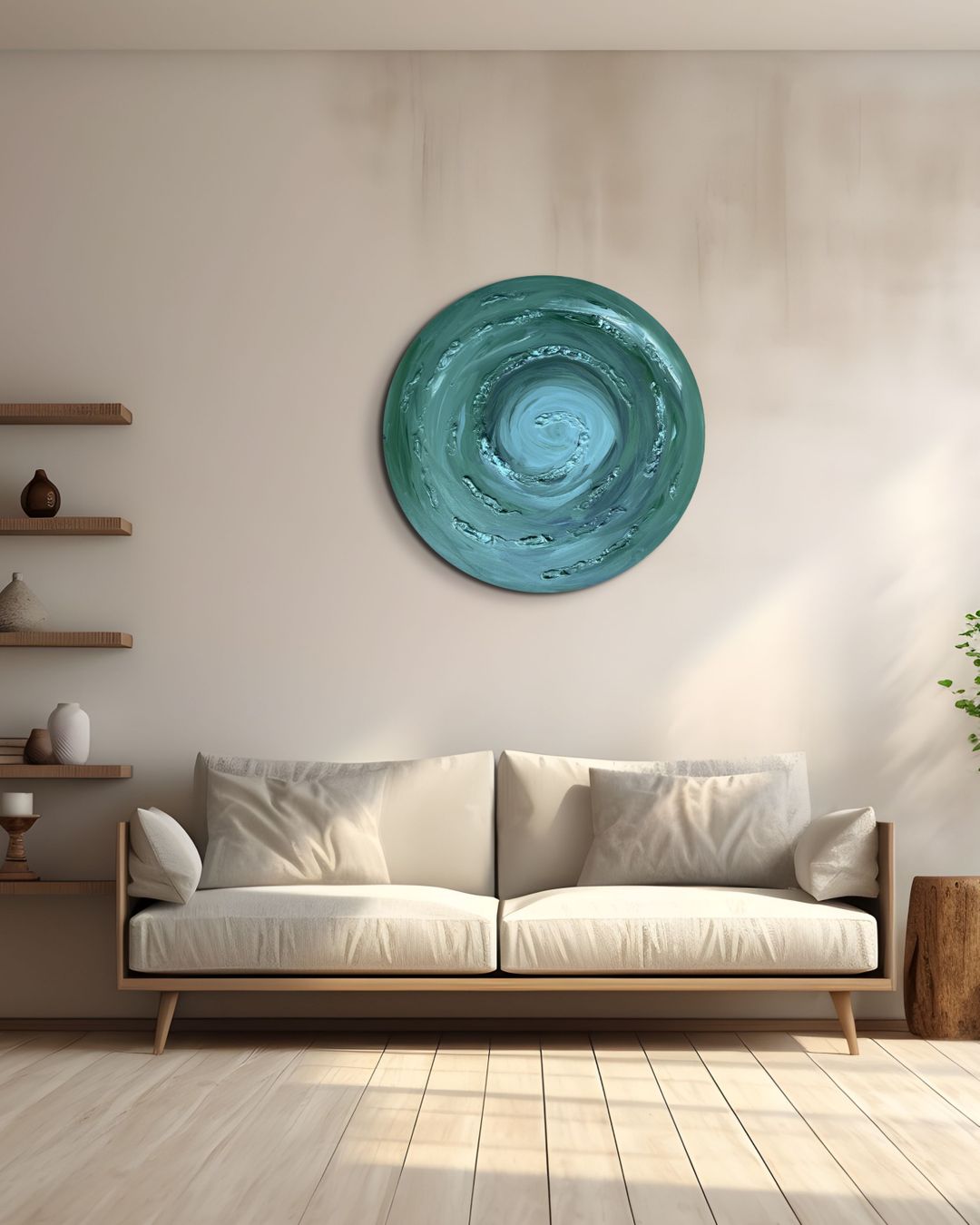 Girdap - Yuvarlak El Yapımı Mix Media Tablo - Akrilik ve Dokulu Soyut Duvar Sanatı