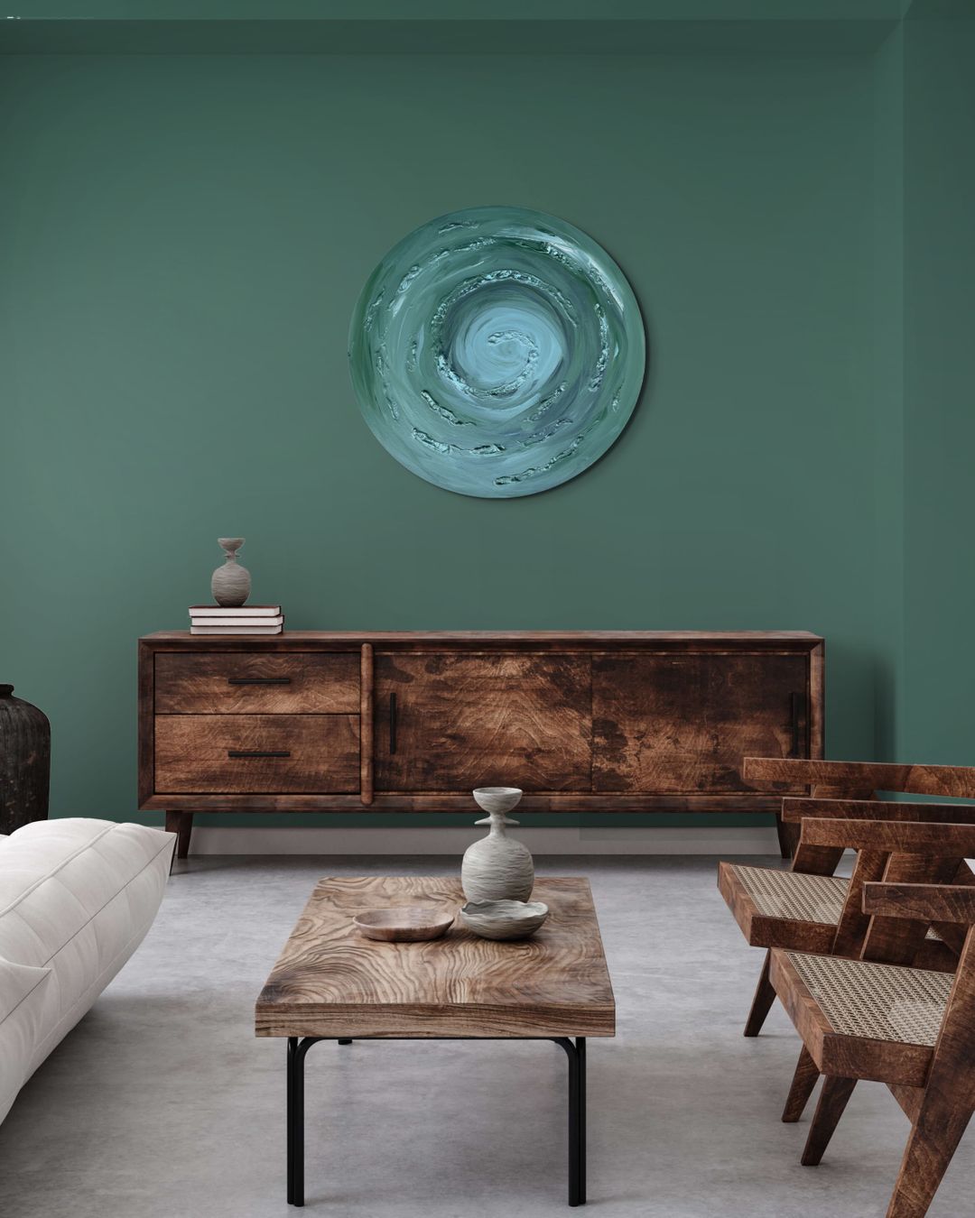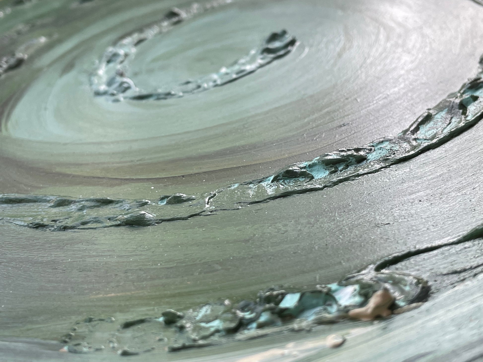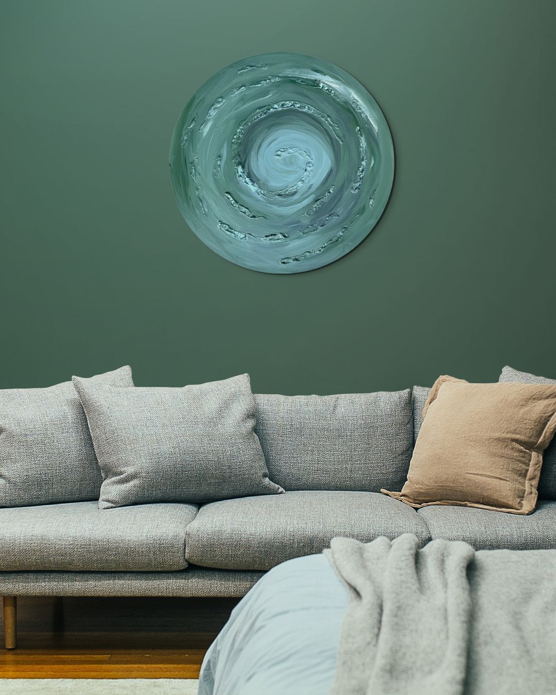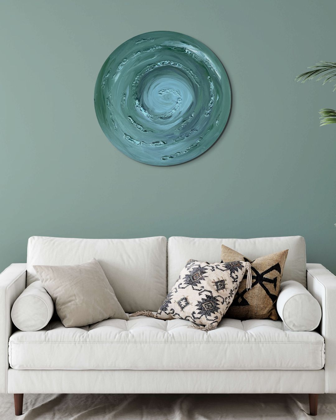 Girdap - Yuvarlak El Yapımı Mix Media Tablo - Akrilik ve Dokulu Soyut Duvar Sanatı