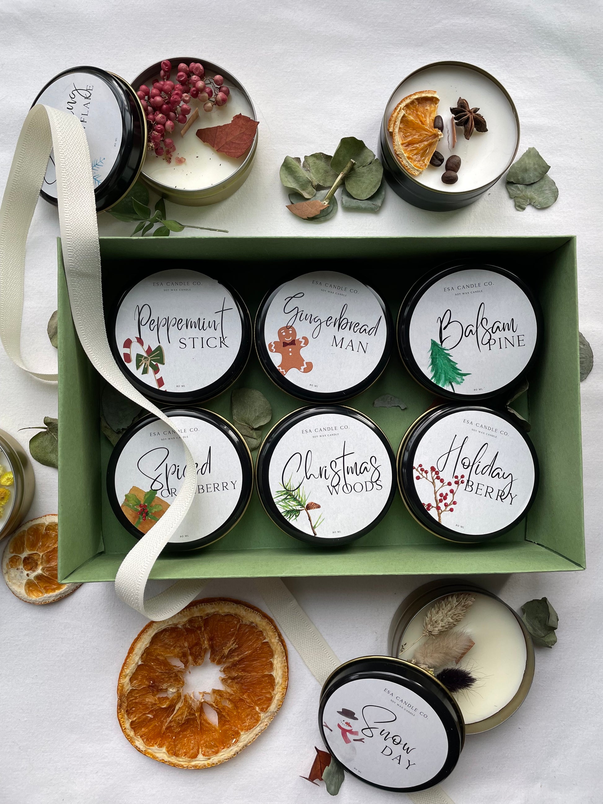 ESA Candle Co.’nun metal kutulu mumları, el dökümü %100 soya wax içeriği, kişiselleştirilebilir kutuları ve süslemeleriyle hem sizi hem sevdiklerinizi büyüleyecek.
