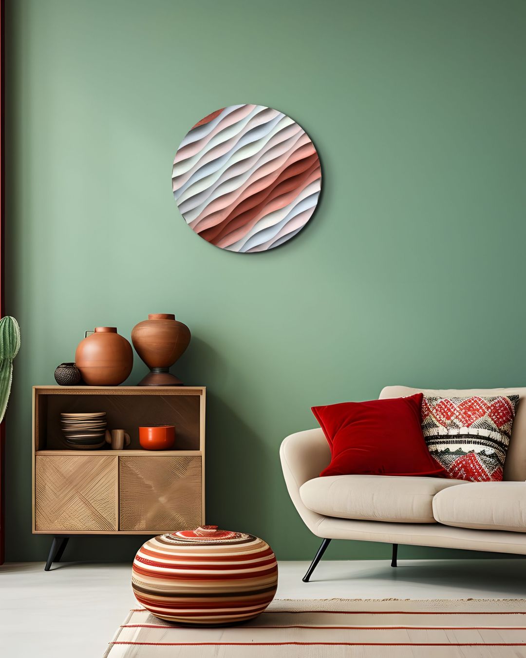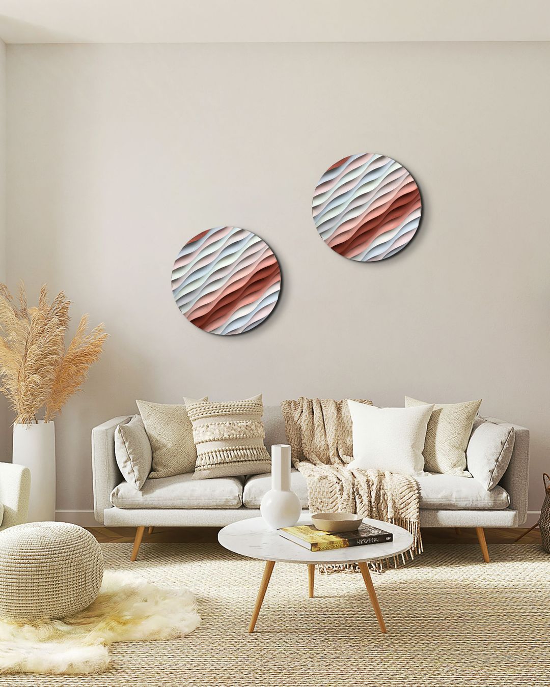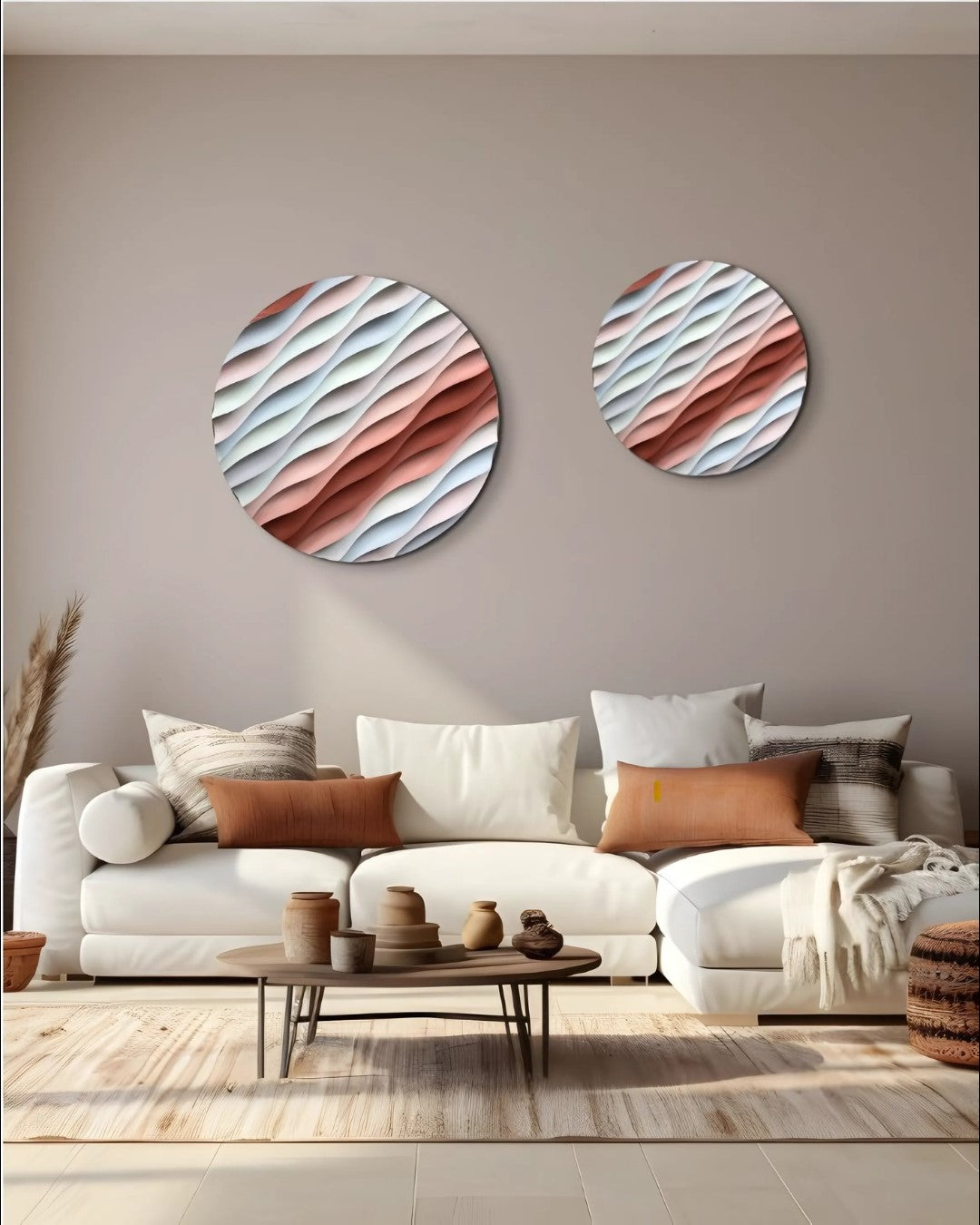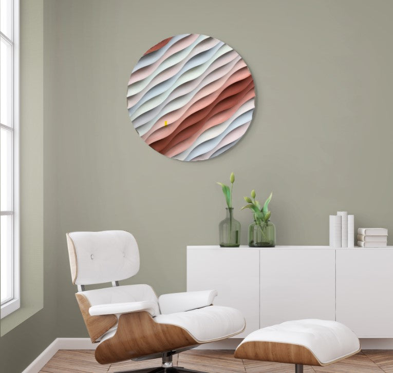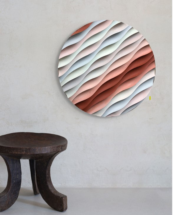 Sakin Dalgalanma – El Yapımı Dokulu Yuvarlak Ahşap Tablo